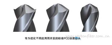 針對(duì)不同的材料和切削工況,需要提供不同鉆尖形式和材質(zhì)的具有PCD 涂層的標(biāo)準(zhǔn)、半標(biāo)準(zhǔn)和定制品鉆頭。精心開(kāi)發(fā)的鉆尖,可以作為CFRP 高纖維基或高樹(shù)脂基的復(fù)合材料的首選,同時(shí)也可以加工復(fù)材金屬疊板材料。