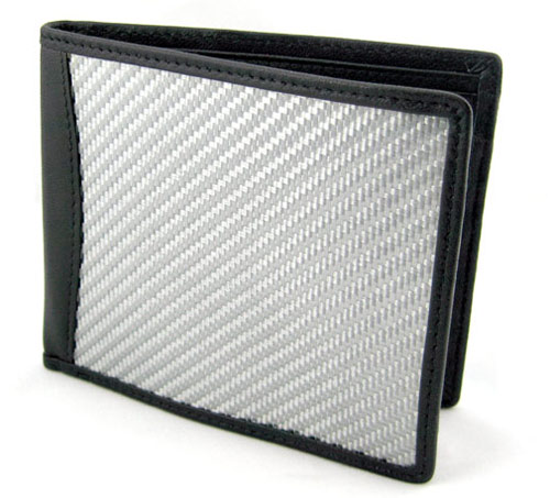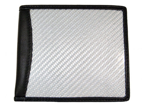 Using carbon fiber on a wallet is becoming a more and more popular trend, we’ve already taken a look at our standard carbon fiber/leather wallet, as well as the Nismo and GT-R collection versions. Now it’s time to add a little more distinction, by offering it in a silver carbon fiber-like weave: