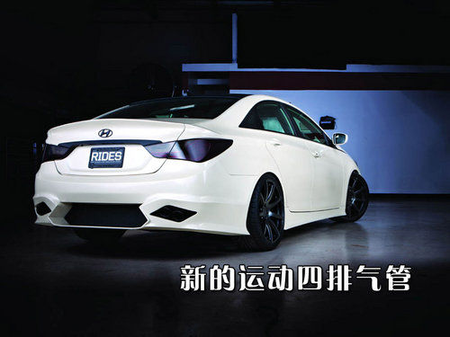 這輛SEMA版索納塔是基于2011款的車型改裝而來,外形較老款而言更為時尚運動。車身采用RIDES為它定制生產(chǎn)的空氣動力學套件,前包圍設(shè)計的緊湊而動感。犀利的前大燈做了特殊的熏黑處理,炯炯有神的“天使眼”氙氣燈光線充足。前包圍兩側(cè)進氣口上方安裝了LED日間行車燈,與奧迪A6(報價 圖片 參數(shù))L(報價 圖片 參數(shù))的款式極為相像 內(nèi)容來自123456