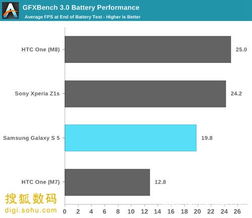 因?yàn)榻饘倬邆涓叩膱?jiān)韌性,其表面更難以被劃傷。但因?yàn)殛枠O化處理,在暴露于未經(jīng)處理的表面時(shí),劃傷會更容易顯現(xiàn)。金屬的另一關(guān)鍵優(yōu)勢是超高的導(dǎo)熱性,這在散熱受限的情形下也就帶來了更好的性能。無論如何,散熱片可都是鋁合金和/或銅材質(zhì)的,而非玻璃或聚碳酸酯。這個(gè)問題的具體體現(xiàn)可以參考Galaxy S5和HTC One M8在T-Rex性能測試中的對比。如下圖所見,HTC One M8的幀率要明顯高于Galaxy S5。 本文來自123