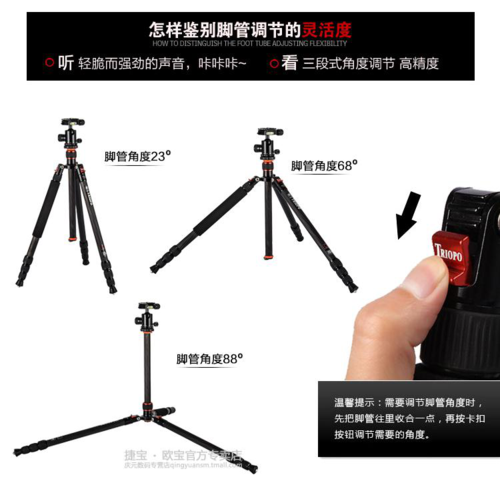 選擇三腳架首先看重的便是產(chǎn)品的質(zhì)量,現(xiàn)在市場上的三腳架產(chǎn)品琳瑯滿目,但是質(zhì)量卻是良莠不齊,而且價(jià)格也是高低不一,一旦不小心,就可能會選擇到質(zhì)量不好的產(chǎn)品,影響成像效果。隨著捷寶三腳架的上市也讓消費(fèi)者解決了購買三腳架的難題,可以輕松選擇到自己喜歡的產(chǎn)品。捷寶三腳架現(xiàn)在已經(jīng)有十余個(gè)系列產(chǎn)品,包括碳纖維、鋁合金、塑料等多種材質(zhì)產(chǎn)品,其中最流行的便是捷寶碳纖維三腳架。