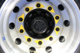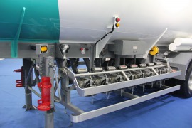 四軸鋁合金油罐半掛一下吸引住了小編的眼球,繞車一圈該車在設計上與國內(nèi)車型明顯不同,經(jīng)詢問該車主要出口馬來西亞,泰國等,還值得一提的是該車也配了輪胎緊固標。