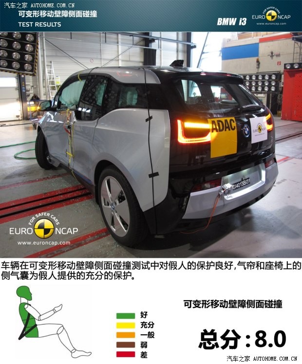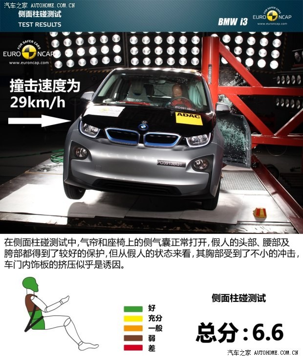 側(cè)面柱碰測(cè)試對(duì)于寶馬i3來(lái)說(shuō),不僅是檢驗(yàn)車(chē)輛對(duì)駕駛員的保護(hù)能力,另一方面,車(chē)身結(jié)構(gòu)對(duì)平鋪在車(chē)底的電池總成的保護(hù)也是一個(gè)考驗(yàn),但遺憾的是,E-NCAP的碰撞試驗(yàn)沒(méi)有對(duì)此進(jìn)行特別的說(shuō)明,在未來(lái),針對(duì)新能源汽車(chē)的碰撞測(cè)試中,這一環(huán)節(jié)是需要完善的。