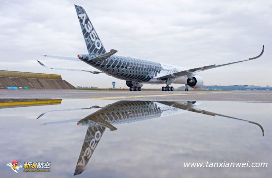 生產(chǎn)序列號為MSN2的第三架空客A350xWB測試飛機(jī)身披“碳纖維”特別涂裝精彩亮相