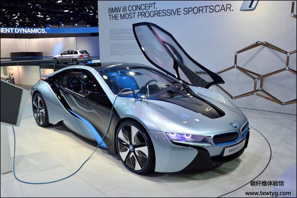 寶馬i3上科技含量最高的要數(shù)碳纖維增強復合材料(CFRP)車身,這種材料是由寶馬公司和西格里公司(SGL Group)聯(lián)合開發(fā)的,以基于聚丙烯腈的熱塑性紡織纖維為原材料,在一定的壓力和溫度下,轉化成極其細長的碳纖維絲線,其中每條碳纖維的直徑僅有0.007毫米,最后再經(jīng)過相應的氧化和碳化處理,形成車身材料。