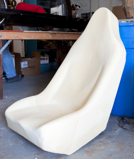 As shown in Figure 2, the seat top was shaped first, leaving a flat surface on the bottom that aided in creating a symmetrical and properly dimensioned seat. After the seat top was fully shaped, the bottom half was rounded out. We left a flat surface on the bottom for our seat bracket (not completed) to post-bond to.