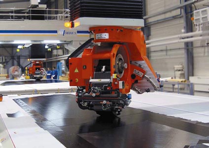 此類設(shè)備采用150mm或300mm帶寬的標(biāo)準(zhǔn)碳纖維帶子,具有非常高的生產(chǎn)效率和最佳的壓實能力,在生產(chǎn)中獲得了成功應(yīng)用,超過34臺的此類設(shè)備已經(jīng)投入運行最長達(dá)13年以上。這種鋪帶機的典型應(yīng)用是制造水平尾翼、襟翼、方向舵、升降艙、機翼等飛機部件,基本上已成為制造上述所有部件的標(biāo)準(zhǔn)技術(shù)方案。