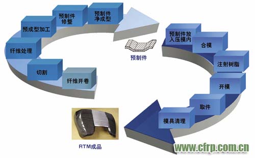 航空工業(yè)目前正采用樹脂傳遞模塑成型工藝(RTM),進(jìn)行大型高強(qiáng)度結(jié)構(gòu)件的生產(chǎn)。然而,其生產(chǎn)效率很低,有時還需大量的手工作業(yè)。在汽車的制造過程中,采用RTM工藝進(jìn)行零部件的生產(chǎn),主要是為了達(dá)到更好的視覺效果,并且只用于小批量生產(chǎn)的頂級轎車中。若能為量化生產(chǎn)開發(fā)出一條可靠的自動化RTM生產(chǎn)線,則纖維增強(qiáng)塑料(FRP)將能夠更加廣泛地應(yīng)用于汽車高強(qiáng)度承重結(jié)構(gòu)件的生產(chǎn)。