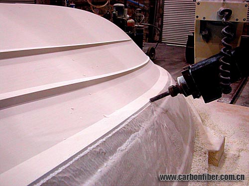根據(jù)計(jì)算機(jī)數(shù)據(jù)進(jìn)行的CNC加工是非常精確的。母模生產(chǎn)用的可加工復(fù)合材料模具板和板材來自不同的制造商。這些產(chǎn)品范圍從聚氨酯泡沫、合成環(huán)氧樹脂到碳泡沫。這些材料粘結(jié)在一起后,被加工成特定的模具形狀,然后將其密封防止層壓樹脂滲透,并用雙馬來酰亞胺或環(huán)氧層壓板包覆,最后才進(jìn)行機(jī)加工。