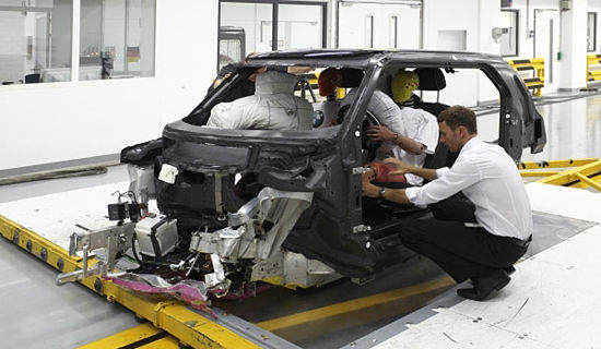 在民用汽車領(lǐng)域,奔馳嘗試應(yīng)用碳纖維材料作為潰縮區(qū)域,首先在SLR McLaren上得到了應(yīng)用。呈尖塔狀的碳纖維潰縮柱由無(wú)數(shù)根粗壯的碳纖維經(jīng)過(guò)編織而成,雖然結(jié)構(gòu)依舊無(wú)比堅(jiān)硬,但是在設(shè)計(jì)上讓它能夠在正面碰撞時(shí)破碎成無(wú)數(shù)細(xì)小的碎片,來(lái)吸收大量的能量,并且碎片不會(huì)對(duì)人造成傷害,這一點(diǎn)非常類似于汽車鋼化玻璃的破碎原理。